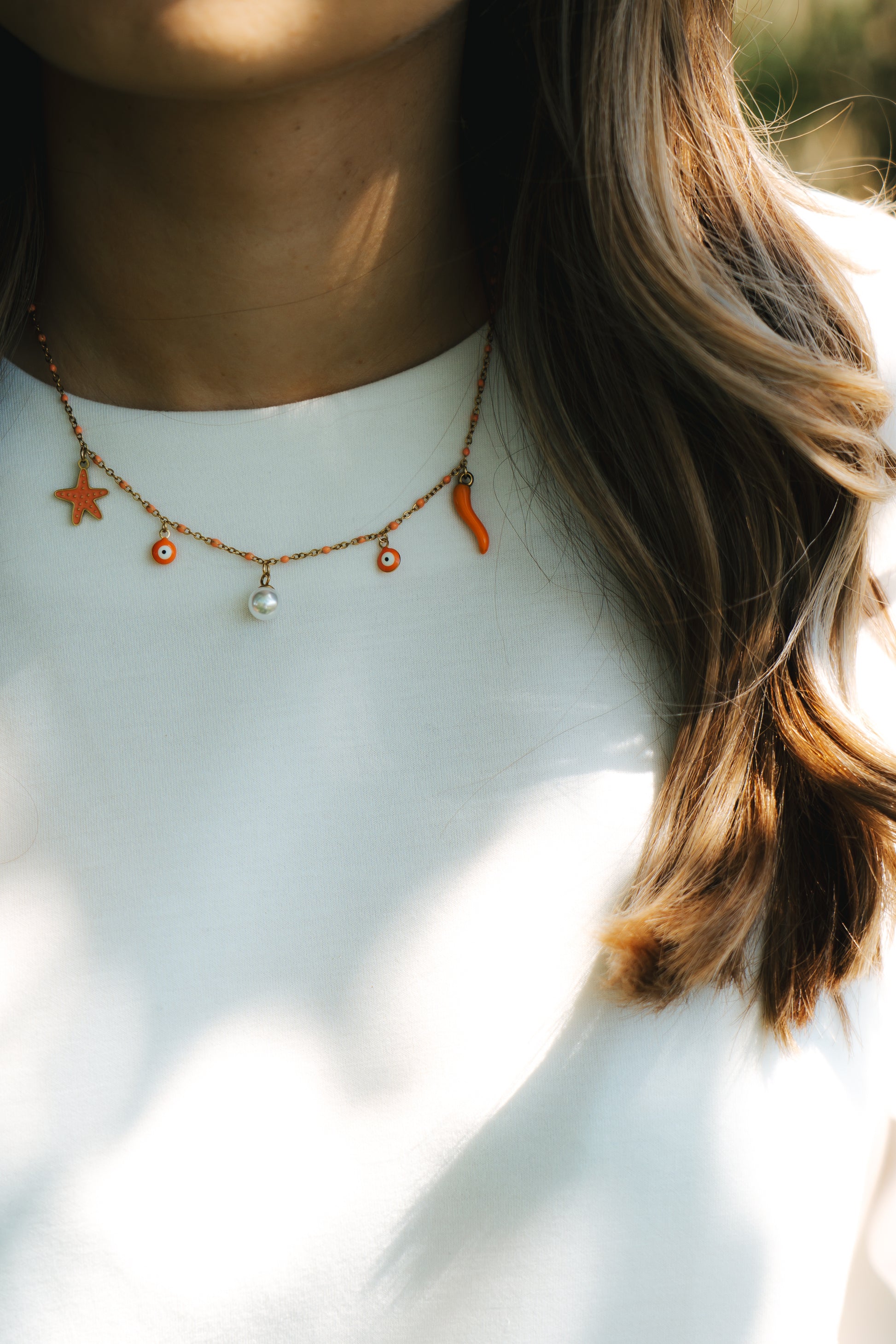 Un collier chaleureux et éclatant, parfait pour illuminer tes tenues d’été, inspiré par les falaises dorées de Bonifacio 🧡